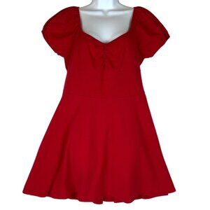 ModCloth Womens Red Knit Puff Sleeve Skater Dress Size Large Cotton Blend USA