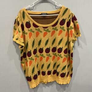 ModCloth Womens Short Sleeve Novelty Sweater Size 3X Mustard Yellow Vegetable