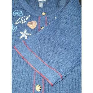 ModCloth Women's Short Sleeves Seashore Embroidered Blue Cotton Cardigan Size 1X.