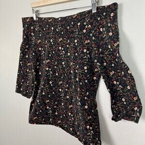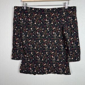 ModCloth Women's Size Large Dark Florals Off the Shoulder 3/4 Sleeve Top