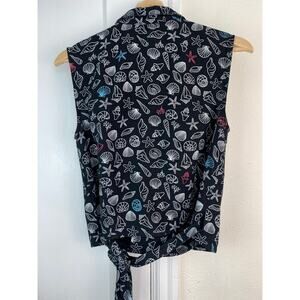 ModCloth Women's Size M Black Linen Blend Sleeveless Seashell Wrap Top