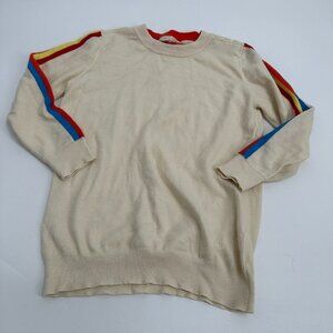ModCloth Womens Sweater Medium Cream Striped Preppy Pullover Stretchy Knit