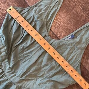 This sleeveless jumpsuit exudes verve through it’s sash topped waist, cropped wide-leg cut, and chic sage green hue, this woven one piece has a real wow factor. Plus, it’s got pockets!