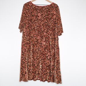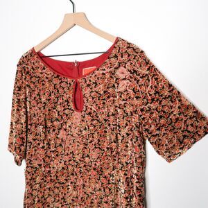 ModCloth Womens Velour Dress Plus Size 4X Red Gold Brown Floral Event Cocktail