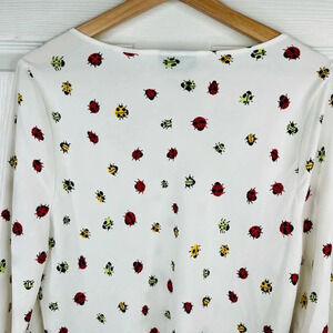 ModCloth Women's White with Ladybug Print A-Line Mini Dress Size L Bell Sleeve
