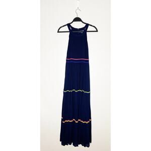 ModCloth Women's Yes to Festive Maxi Halter Summer Dress Sleeveless Gauzy Tiered Ricrac Detail Lightweight Lined NWT