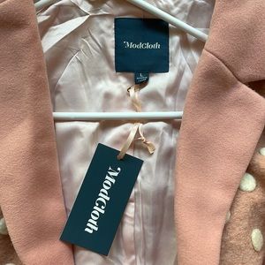 Never worn, brand new. Wool. Beautiful pink with fun polka dot detail