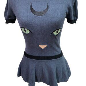 ModCloth X Collectif Women's Knit Sweater Size 2 Peplum Halloween Cat Embroidery