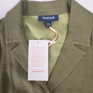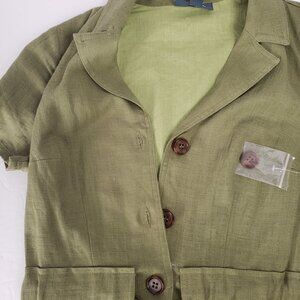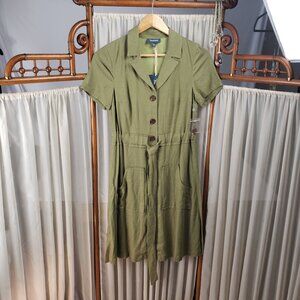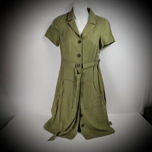 ModCloth XXS Dress Olive Green Linen Pockets Button Shirt Belt Tie Khaki NWT