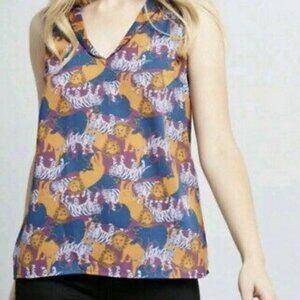 ModCloth Lions Tigers & Bears Sleeveless V-Neck Blouse Sz XXS