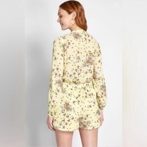 ModCloth Yellow Dragonfly Retro Floral Time To Suit Up Long Sleeve Romper Sz.M