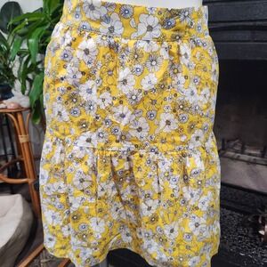 ModCloth Yellow Floral tiered 100% Cotton Skirt w/pockets Womens size 8
