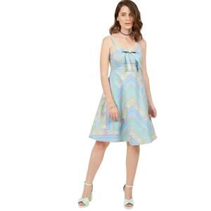 ModCloth Yours to Adore in Geometric Blue Pastel Color A-Line Bow Size Small
