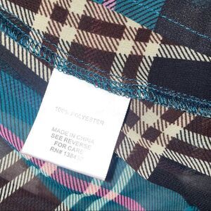 ModCloth blue, black and white plaid button up semi sheer collared blouse/top SZ M