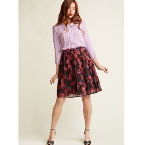 There are a few simple reasons why pleated skirts are always at the height of style. This black number from our ModCloth namesake label exemplifies the flattering shape and dimensional elements this look offers through its A-line silhouette, chiffon fabric, and pretty poppy print - an elevated take on a true wardrobe staple!