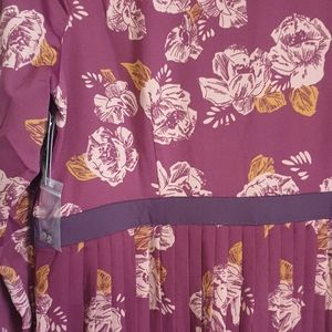 ModCloth pleated, long-sleeved dress. Buttons up front, side zipper.