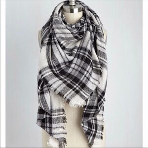 ModCloth grey & black Fall/Winter blanket flannel tartan scarf