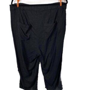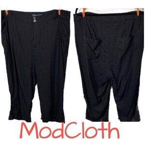ModCloth black cropped wide leg pants. 2 button with zipper closure. Front side pockets and flat back pockets. 80% viscose, 20% linen. Contrast 100% cotton. Size 18