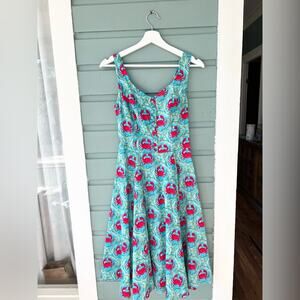 ModCloth miss lulo Heidi crab print dress retro swing vintage inspo rockabilly S