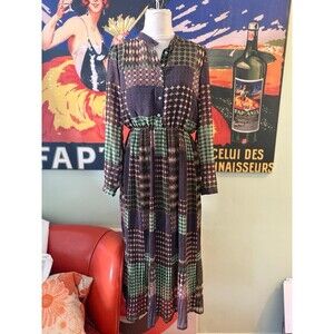 New without tags ModCloth patchwork pleated midi dress. Size medium