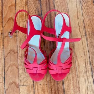 Bright red T-strap ModCloth heels, size 8. I’m obsessed with these but I just can’t walk in a heel this high! Great condition, only worn once. 👠