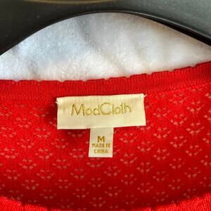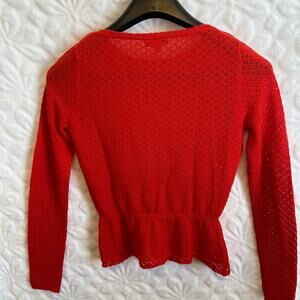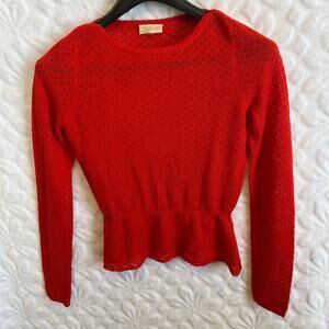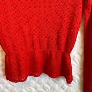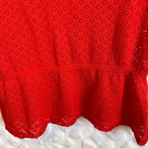 ModCloth red tight knit eyelet pattern top extra long sleeves peplum size medium