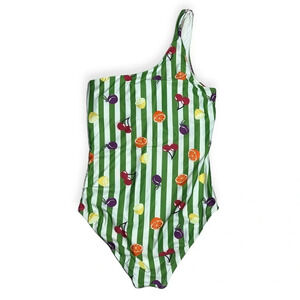 ModCloth retro one shoulder fruit stripe one piece swimsuit size Small