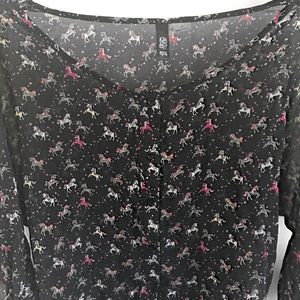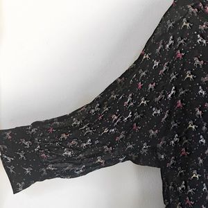 Unicorn printed sheer high-low top. Great with jeans or skirts!!