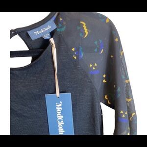 ModCloth shirt Halloween xxs NWT moxie mastery sheer pumpkin 3/4 sleeve tee