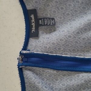 ModCloth sleeveless dress with a blue & white pattern with silver threading size 2X. Perfect for casual outings. Has pockets.