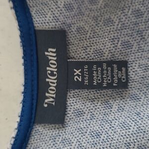 ModCloth sleeveless dress with blue & white pattern with silver threading size2X