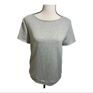 ModCloth womens open back with a tie knot at bottom grey sweatshirt short sleeve cotton size Large