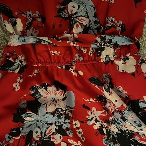 Worn a few times. Single snap button on top for higher closure. Elastic waist and sash tie.