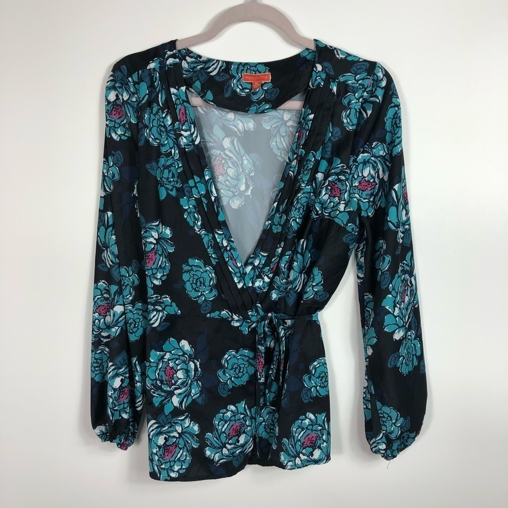 ModCloth wrap top. Size medium. There are a few minor snags on the front-view photos.