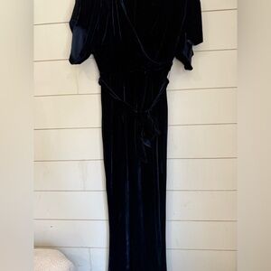 ModCloth x Collectif Keiko Velvet Maxi Dress Womens High Slit Blue Witchy