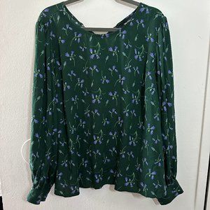 ModCloth x Collectif Womens Size 20 2X Green Floral Long Sleeve Blouse Tie Back