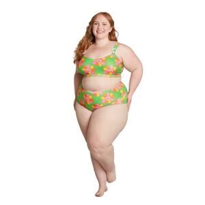 ModCloth x Marisol Muro NIP Green Petals Cats Sara High-Waisted Bikini Bottom LG
