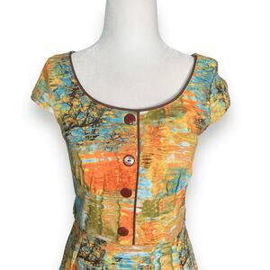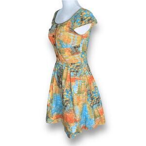 ModCloth x Retrolicious All The Colors Of The Whim Abstract Fall Print Dress
