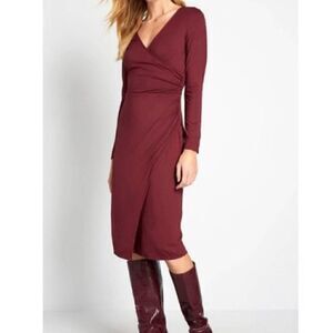 ModCloth Long Sleeve Faux Wrap Midi Dress.