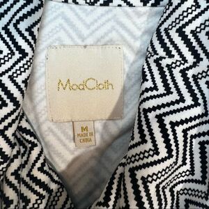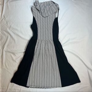 ModCloth Chevron Print Cowlneck Sleeveless Black & White Dress M
