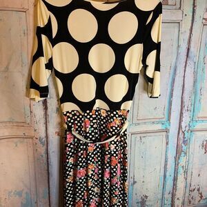 Belted dress by ModCloth size small. Polka dot and flower print knee length. Super cute