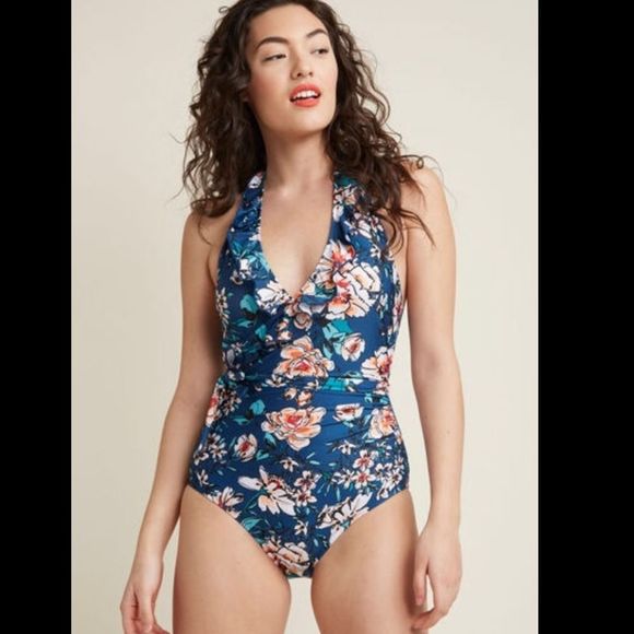 ModCloth Here Comes Ruffle Floral Swimsuit