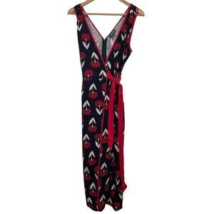 ModCloth Linen Blend Floral Wrap Jumpsuit Size S