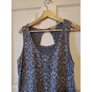 Mod-O-Doc Dress Womans Extra Large Gray Ikat Jersey Tank Stretch Layered Keyhole Hi Low