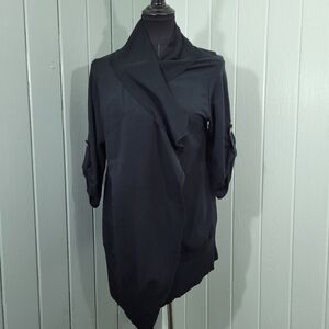 Mod-O-Doc Women's Sz S Black Waterfall Open Front Cardigan 3/4 Sleeve Lagenlook
