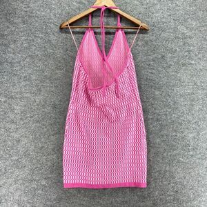 ModOnTrend Dress Women L Large Pink Geometric Shift Midi Sleeveless Halter Neck