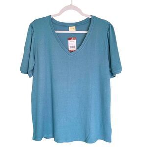 Mod Ref Women’s Contemporary V-Neck Puff Short Sleeve Blue Blouse Size XL NWT