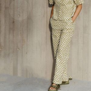 Mod Ref - The Jo Pants | Green Check The Jo Pants is cut from a cotton linen fabrication and offers breathability. Pair with The Jo Shirt for a complete set. 70% Cotton, 30% Linen