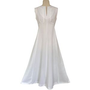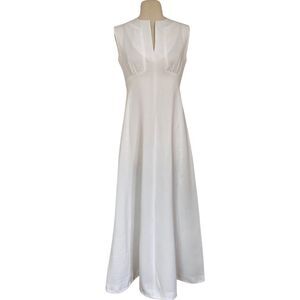 Mod Vintage 60s / 70s Split Neck Sleeveless White Bridal Wedding Gown