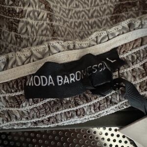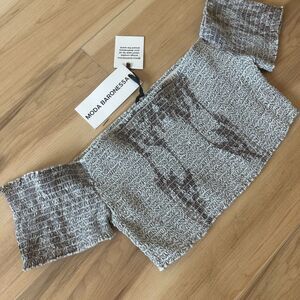 Moda Baronessa Womens Malibu 100% Silk Cap Crop Top Smocked Coastal Size Large